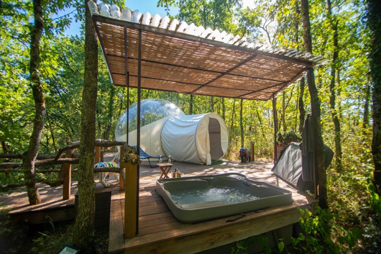 Toutes nos bulles sont équipées d'un SPA privatif sur la terrasse pour un moment de détente à deux dans un cadre préservé.