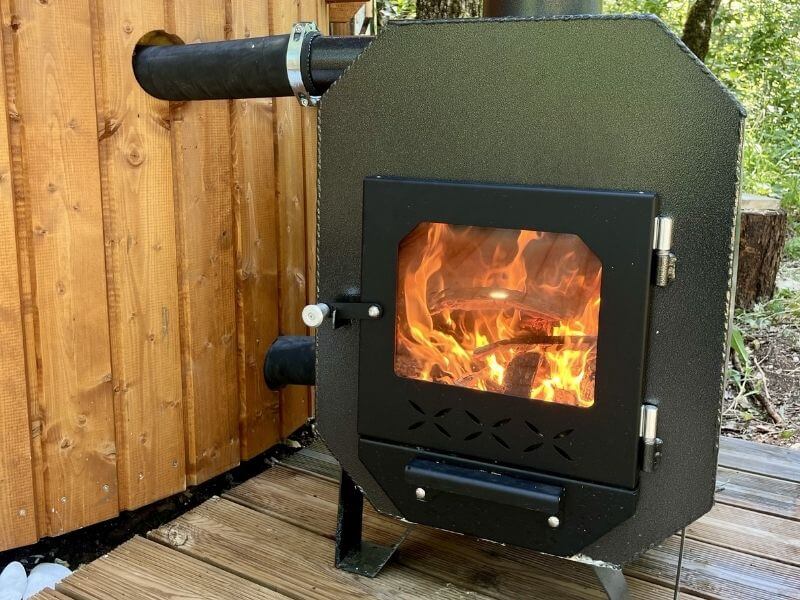 Sur la terrasse, profitez de votre spa privatif chauffé au feu de bois. L’expérience est unique : allumez le feu, laissez l’eau se réchauffer doucement, puis plongez dans la chaleur bienfaisante en écoutant les bruits de la nature. Une immersion sensorielle, simple et authentique, au cœur des arbres.